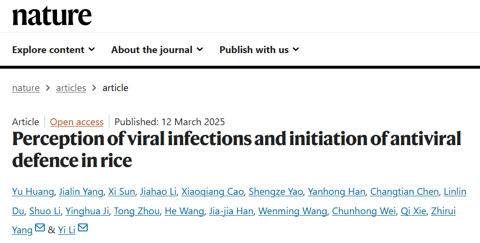 近日,北京大学李毅研究团队联合福建农林大学等多个实验室在Nature上发表了题为“Perception of viral infections and initiation of antiviral defence in rice”的研究论文,揭示了水稻感知病毒侵染并启动抗病毒免疫反应的分子机制。百迈客生物为该研究提供了转录组测序服务!