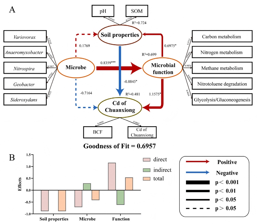 - 调控机制明确,PLS-SEM模型证实,轮作通过招募特定微生物→强化碳氮代谢→提升土壤pH与有机质→最终降低镉积累,该路径拟合度 0.6957;