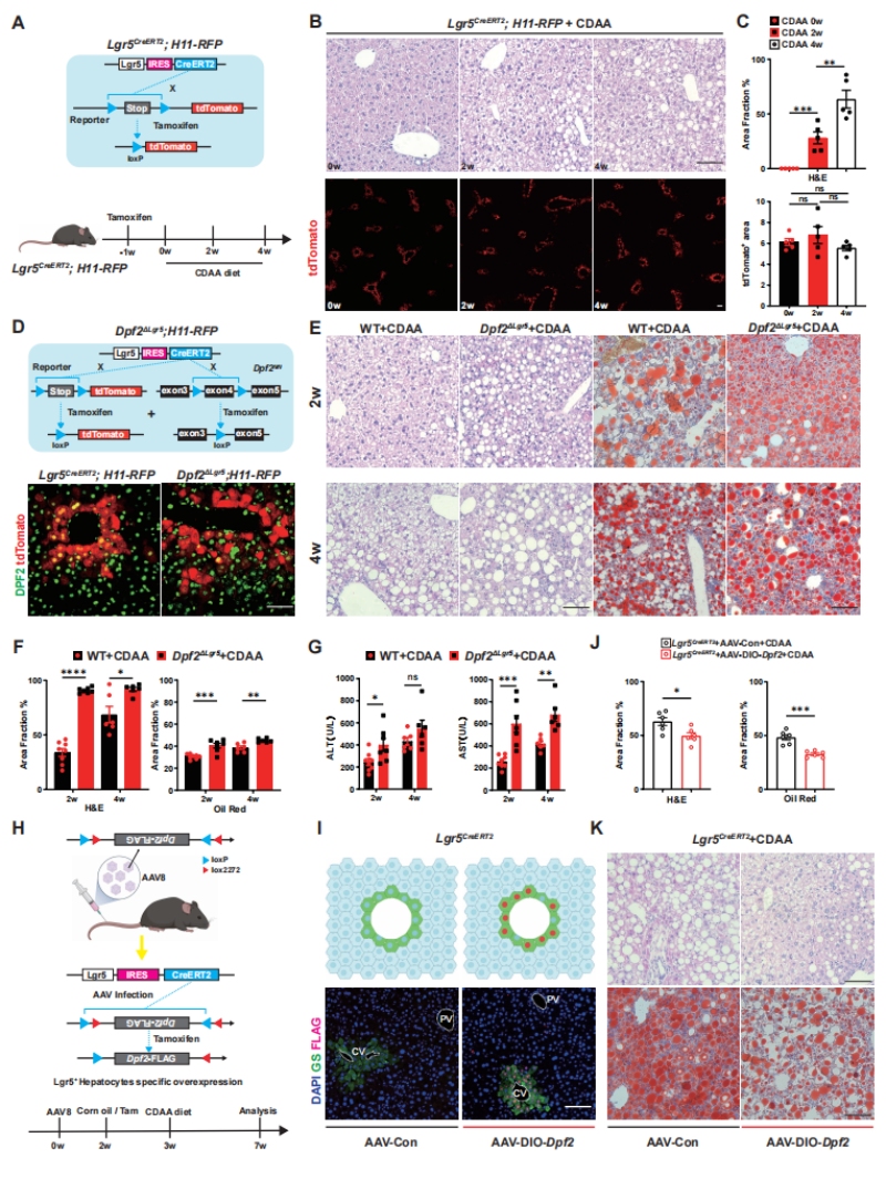 Lgr5+肝细胞在肝脏稳态与MASH进展中保持稳定,Dpf2缺失显著加剧MASH表型